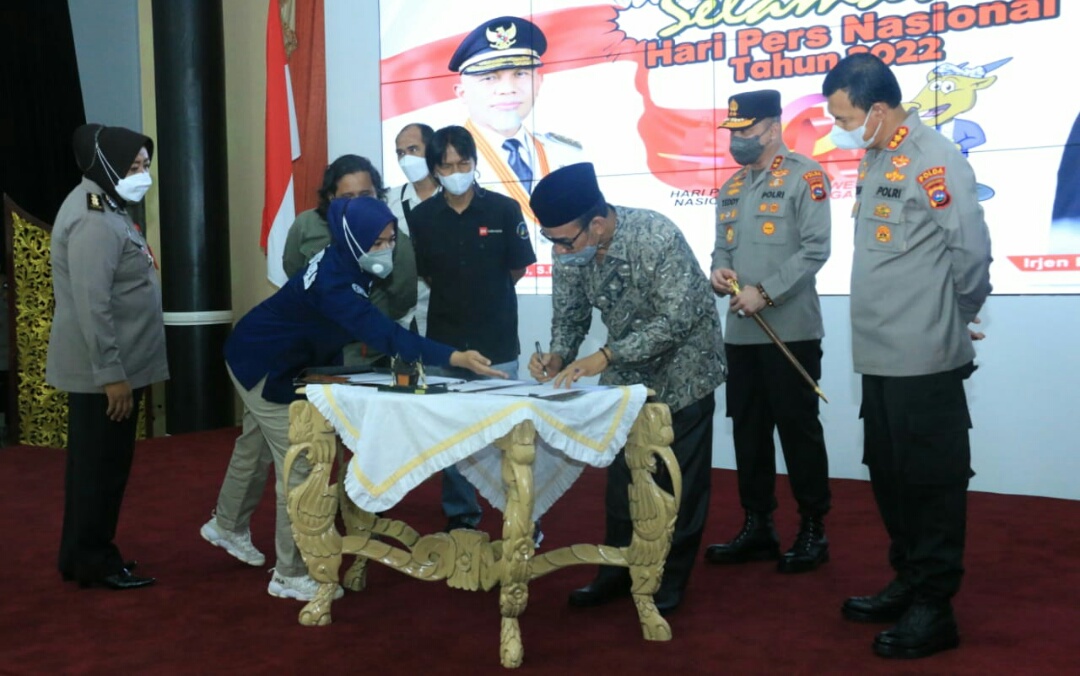 “Isinya seperti perlindungan kemerdekanan pers dan penegakan hukum terkait profesi wartawan dan peningkatan pemahaman dalam rangka perlindungan kemerdekaan pers dan penegakan hukum profesi kewartawanan,” Sebut Kabid Humas Polda Satake Bayu.