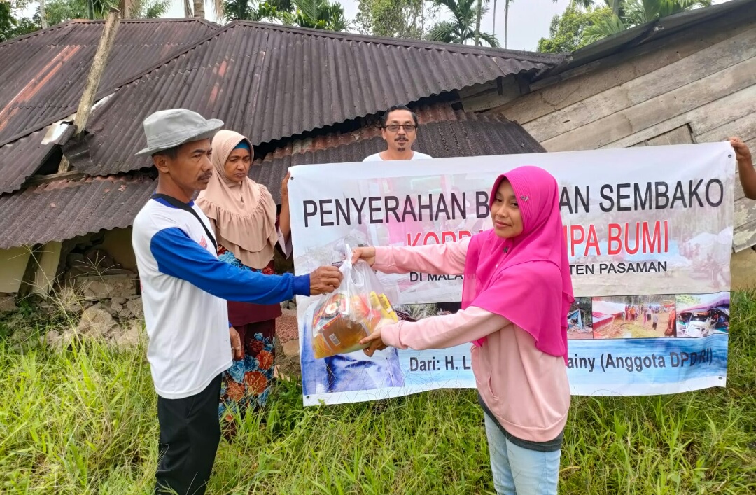 Secara terpisah, Anggota DPD RI dari Dapil Sumbar, H. Leonardy Harmainy Dt Bandaro Basa, S.IP., MH mengatakan bantuan sembako tersebut merupakan ungkapan duka cita yang mendalam terhadap korban gempa bumi yang berpusat pada 123 kilometer arah dari Kota Padang.