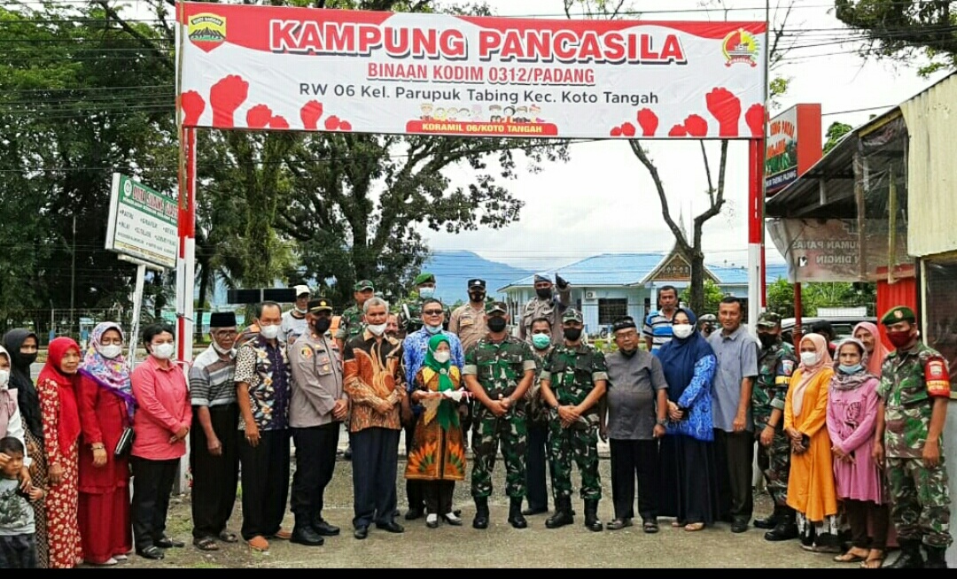 Iwosumbar.com, Padang- Dandim 0312 Padang, Letkol.Inf. Jadi, S.IP, bersama Tokoh Masyarakat dan Ketua LPM Kecamatan Koto Tangah resmikan RW 06 Parupuk Tabing sebagai Kampung Pancasila.