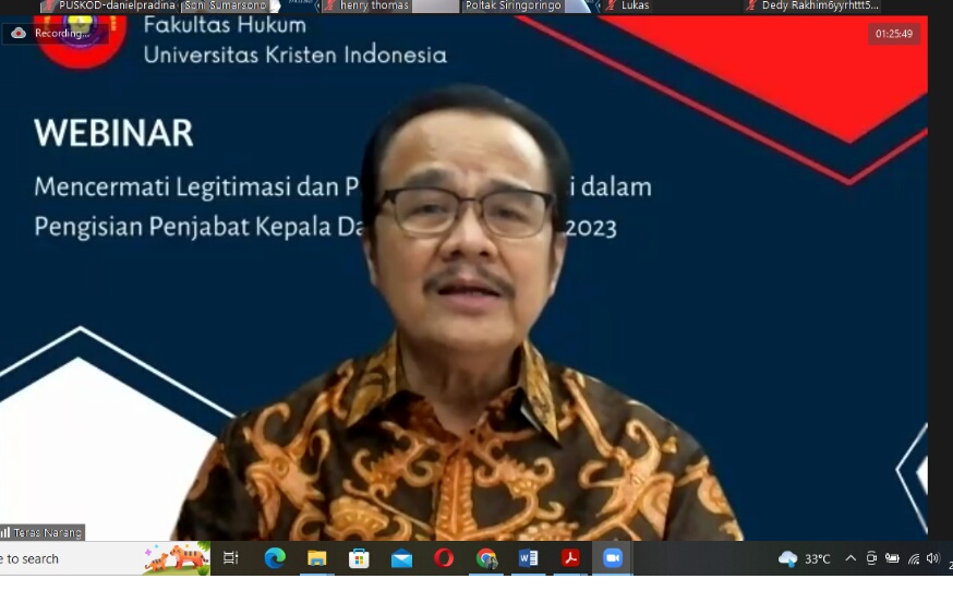 Hal itu dikatakan Teras Narang saat menjadi pembicara dalam webiner PUSKOD FH UKI bertajuk “Kontroversi Pengisian Penjabat Kepala Daerah. Mencermati Legitimasi dan Preseden Demokrasi dalam Pengisian Penjabat Kepala Daerah Tahun 2022-2024”, Jumat 29 Juli 2022.