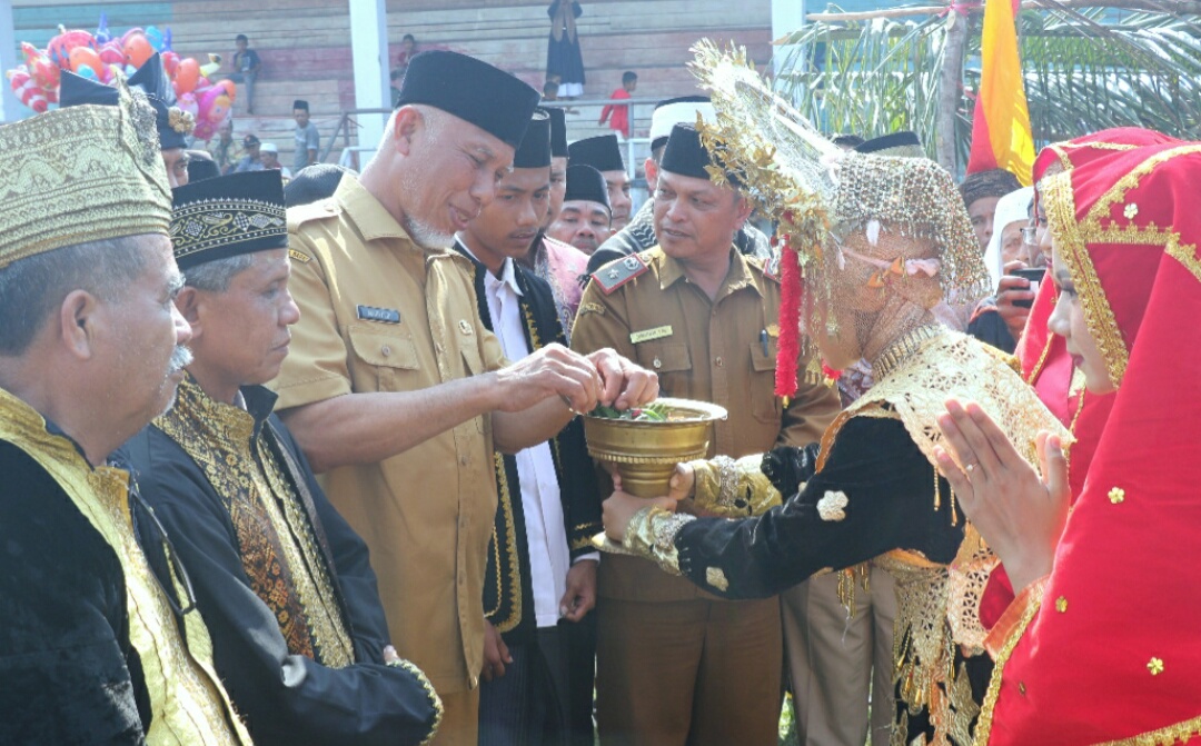 Gubernur Mahyeldi mengapresiasi tradisi Bakaua Adaik yang tetap dijaga oleh masyarakat Jambulipo sampai saat ini.