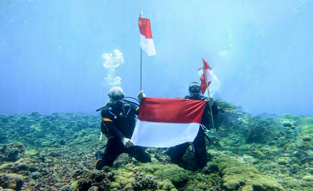 Selain upacara bawah laut, di kawasan yang sama, kedua pimpinan Sumbar itu bersama para penyelam juga melakukan aksi pembentangan bendera merah putih sepanjang 77 meter sesuai usia HUT RI tahun ini.